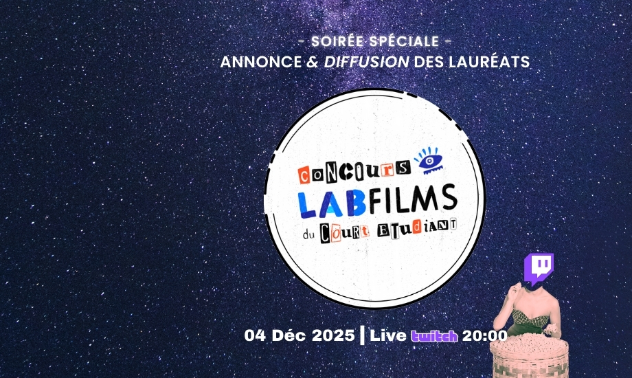 JOUR J 🔥 LabFilms animera son 1er live Twitch le jeudi 4 décembre 2025 à 20h, consacré au Concours LabFilms du Court Étudiant ⭐ Au programme: Annonce des LAURÉATS du Concours • Réactions du Jury • Diffusion des courts vainqueurs • Retours des viewers dans le chat.