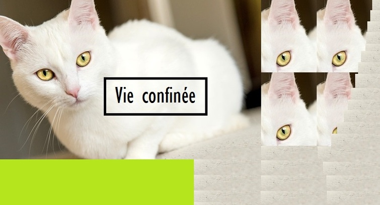 Un chat blanc est enfermé dans son appartement. Il est confiné et doit partager son appartement avec des humains.