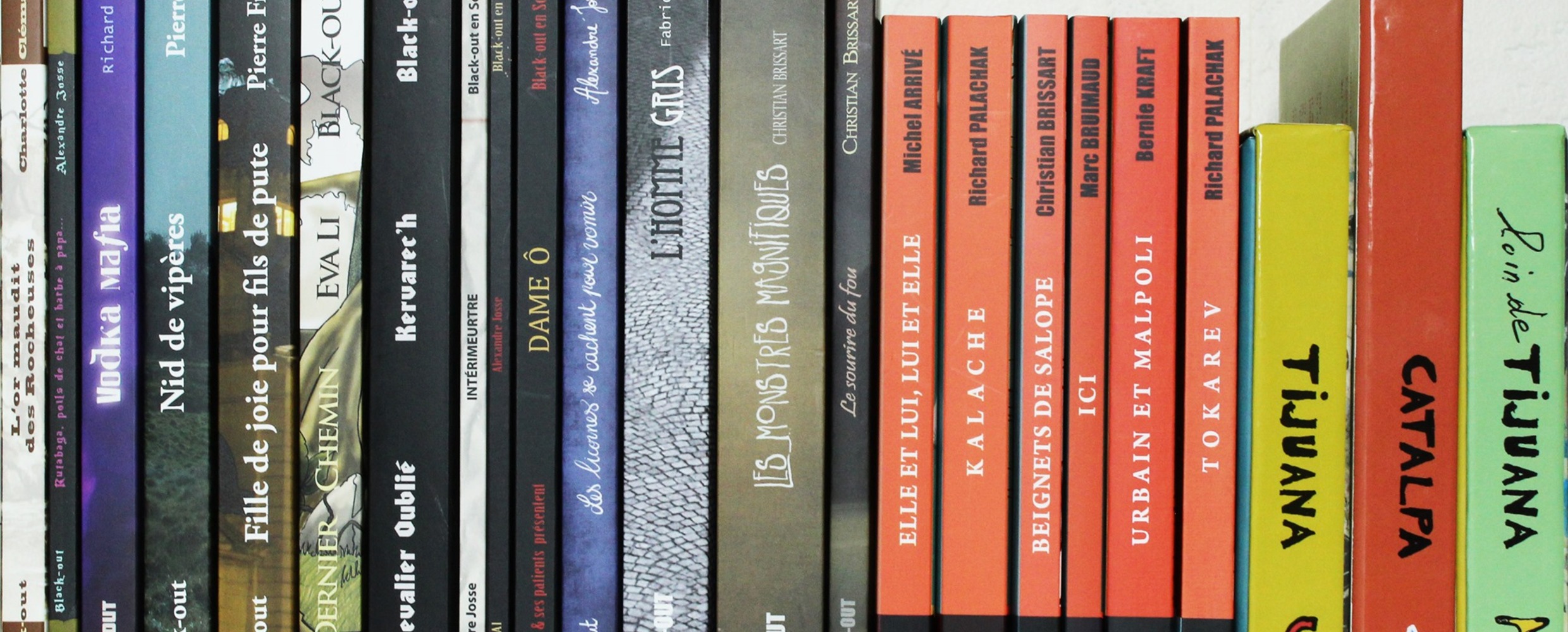 « Black-out » propose de nombreux titres de littérature noire, dans une dizaine de collections différentes, et plusieurs productions de théâtre et de cinéma.