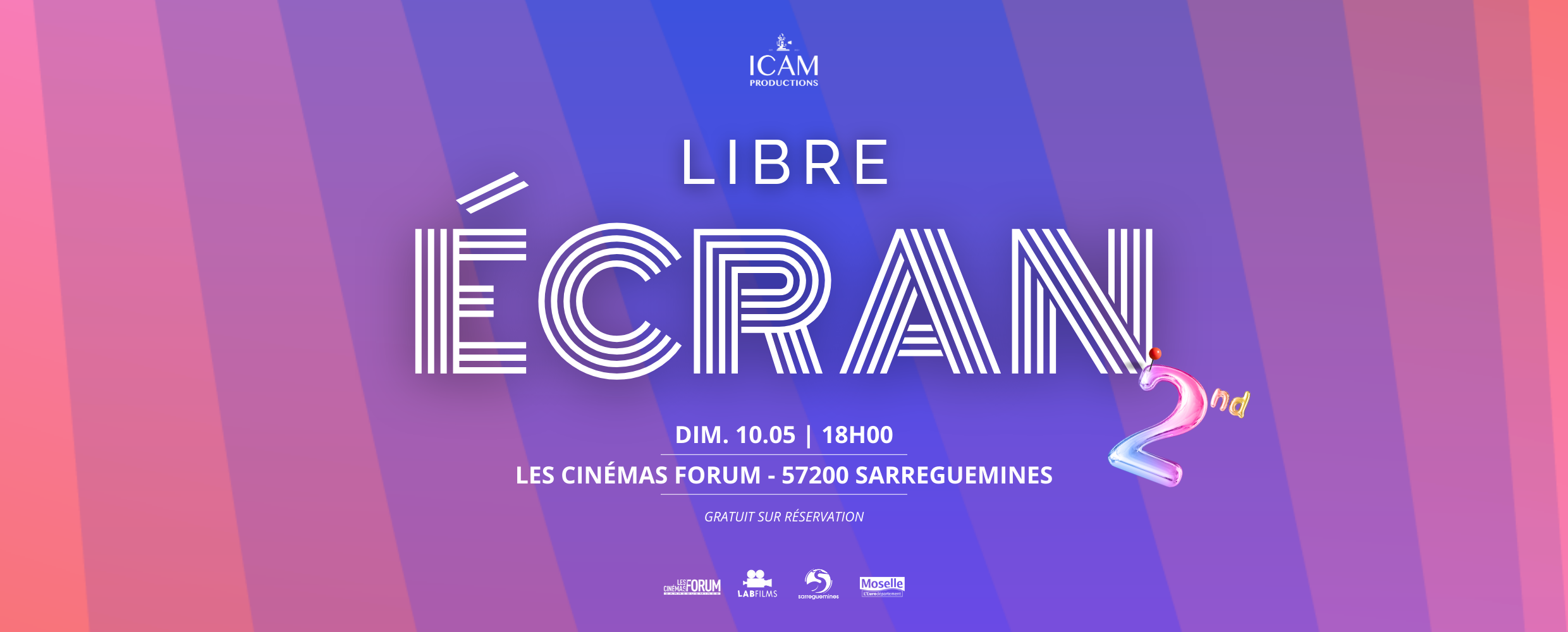 Libre Écran est rendu possible grâce au soutien de plusieurs partenaires engagés, parmi lesquels LabFilms, la Ville de Sarreguemines, le Département de la Moselle et Les Cinémas FORUM et bien d’autres. Ensemble, ils contribuent à faire vivre un espace de découverte, de dialogue et de valorisation du cinéma indépendant et émergent.